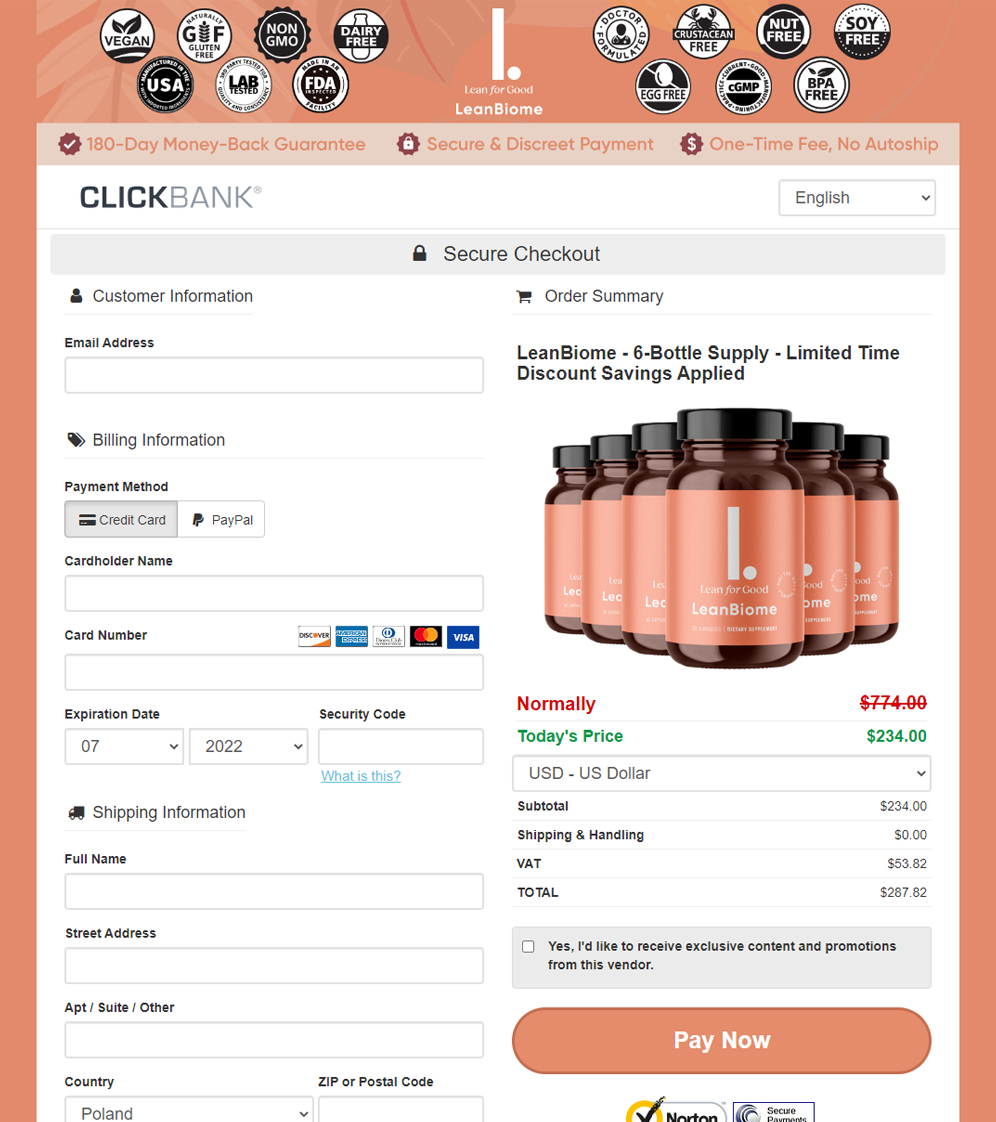 Once you have clicked the “Buy Now” button that is right below this text, you will be taken to the secure checkout page. Just enter your information, and you will then be given instant access to the entire Leanbiome by Marc Hall