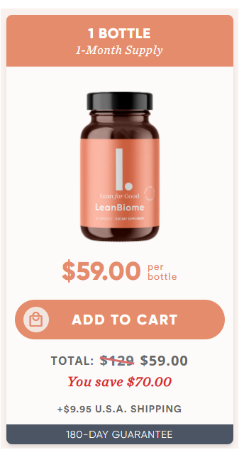 Refund Policy: If within the first 60 days of receipt you are not satisfied with Leanbiome, you can request a refund by sending an email to the address given inside the product and we will immediately refund your entire purchase price, with no questions asked.